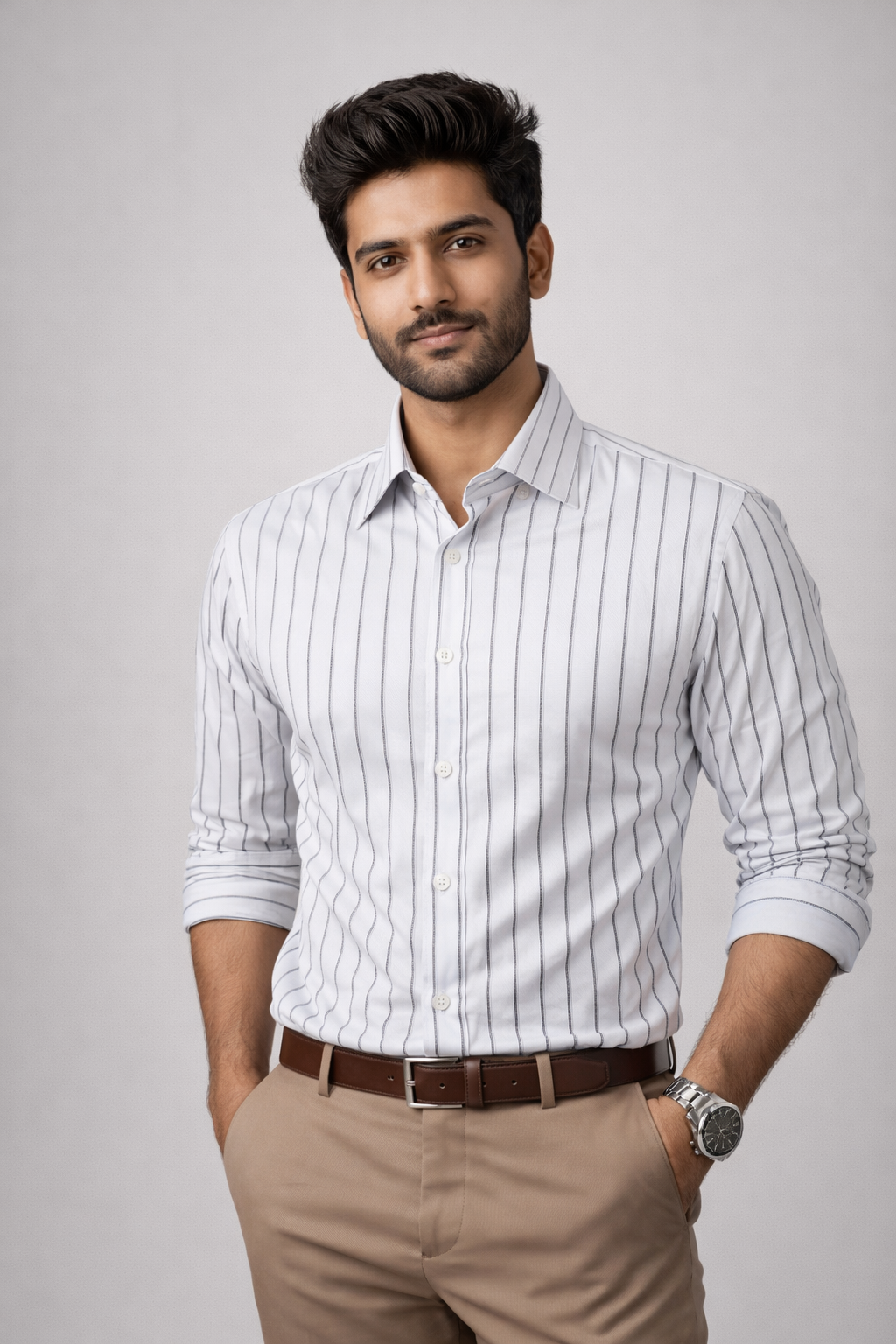 The Foundation of a Power Wardrobe Command attention in every room with a shirt designed for the modern decision-maker. The Black Fine Striped Cotton Formal Shirt by Mekasually balances classic heritage with a sharp, contemporary edge. By utilizing delicate, high-contrast vertical lines against a brilliant white base, this shirt creates a sophisticated visual texture that adds height and authority to your professional silhouette.